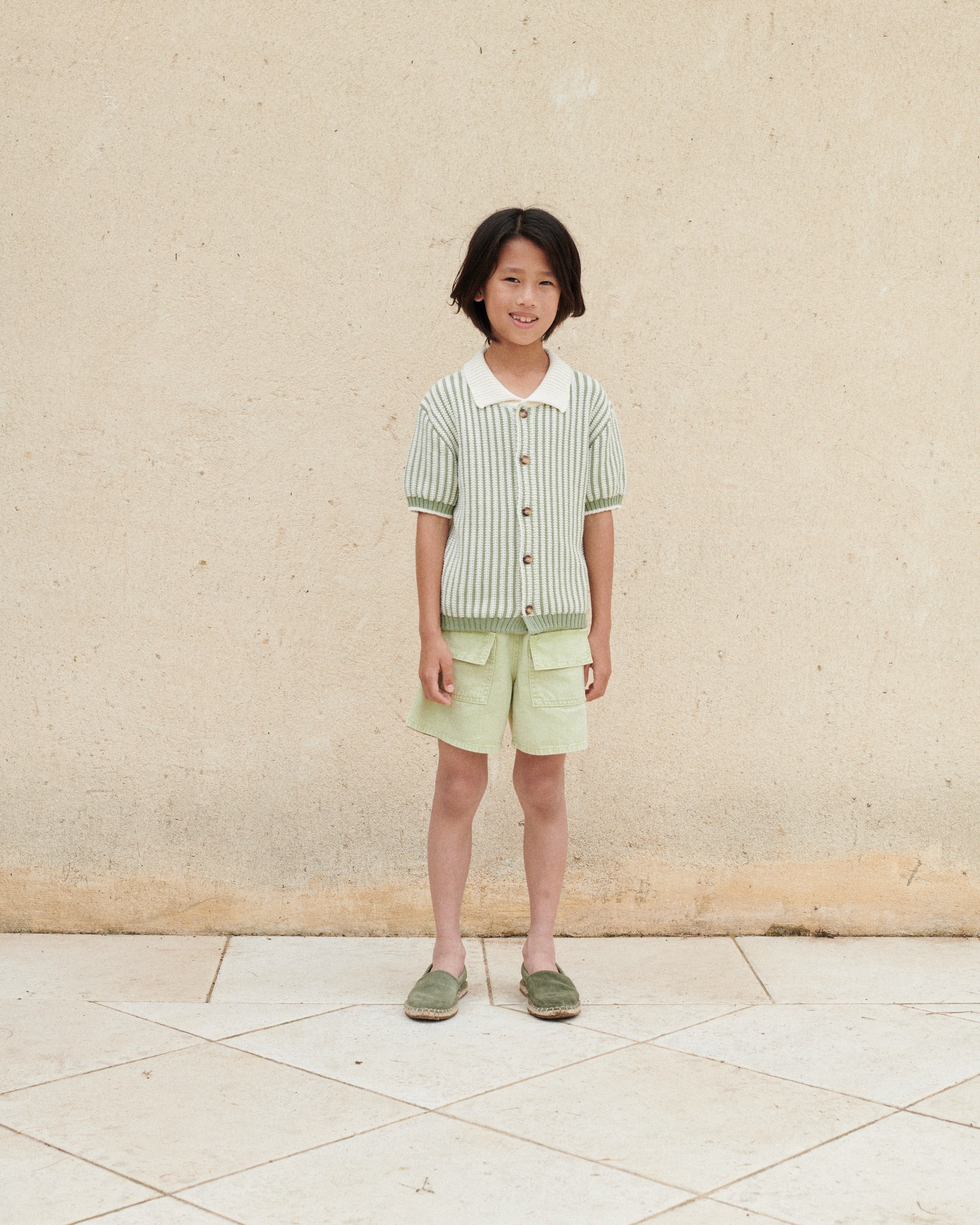 Easy-to-wear Koa shorts in washed matcha color are our favorites of the season. Signature loose fit shorts inspired by vintage archives. Features front pockets and elasticated waist for extra comfort. Perfect match with Pipo shirt.