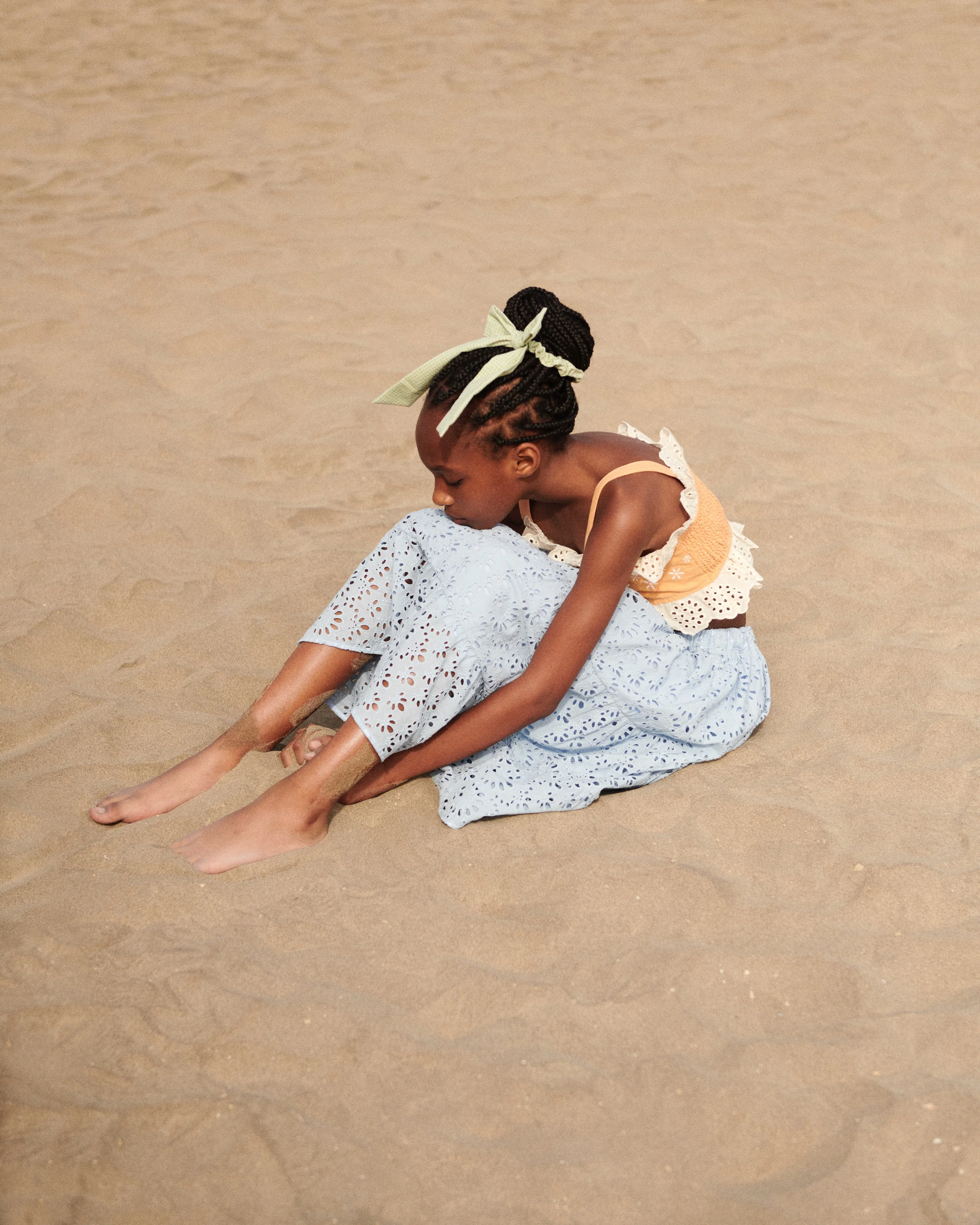 Inspired by romantic dreamworld - adorable Lauren skirt in cotton eyelet fabric in sky blue color. Features comfortable A-line silhouette, elasticated waist and beautiful ruffled details. Perfect match with Lauren top.