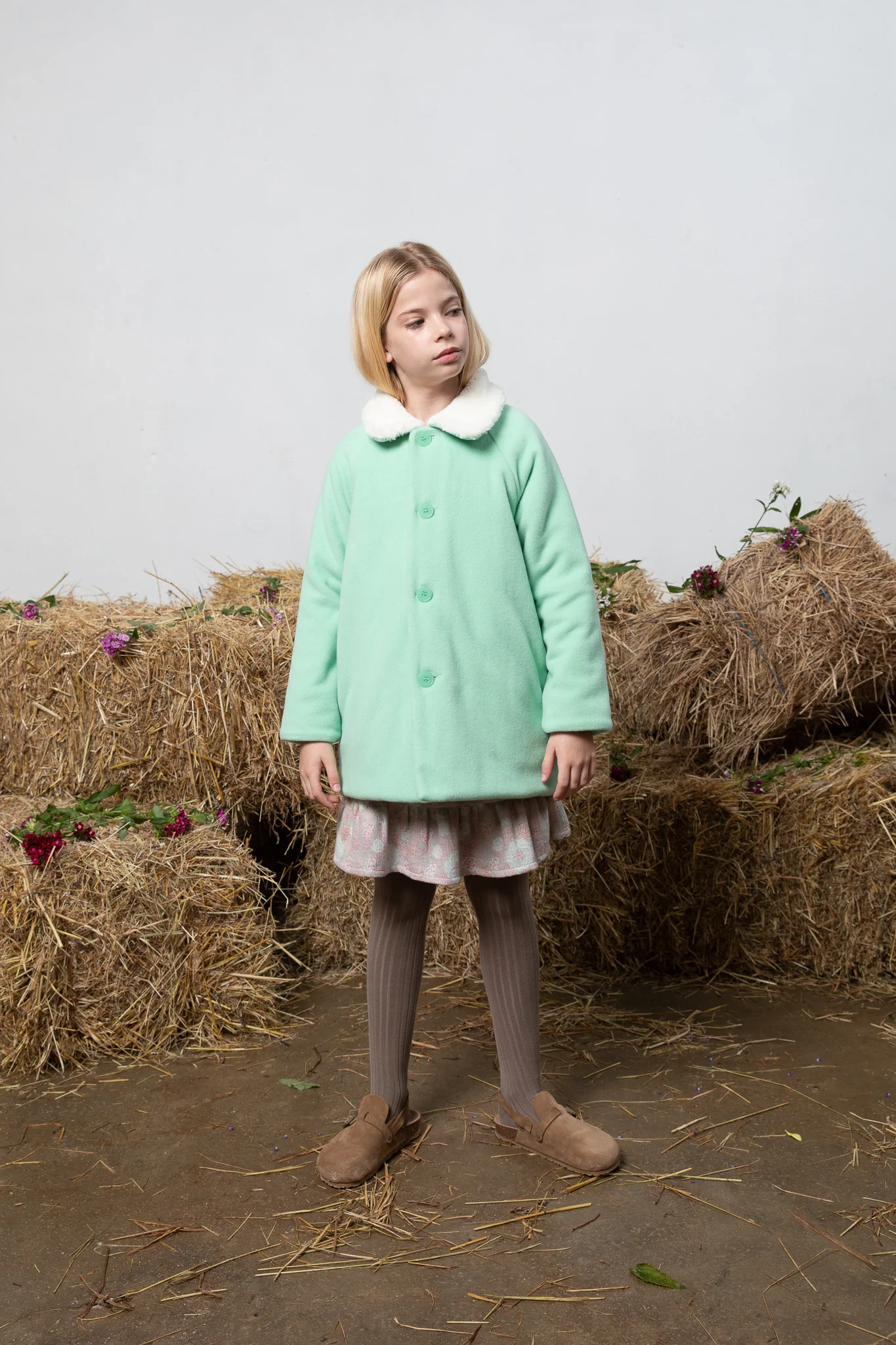 Our beloved signature coat silhouette - Luna. In most adorable winter mint colour. Perfect for those first cold fall days ahead. Features raglan sleeves, elegant matching buttons, fur collar, side pockets and fully lined for extra warmth. A must-have for this autumn-winter season ahead.