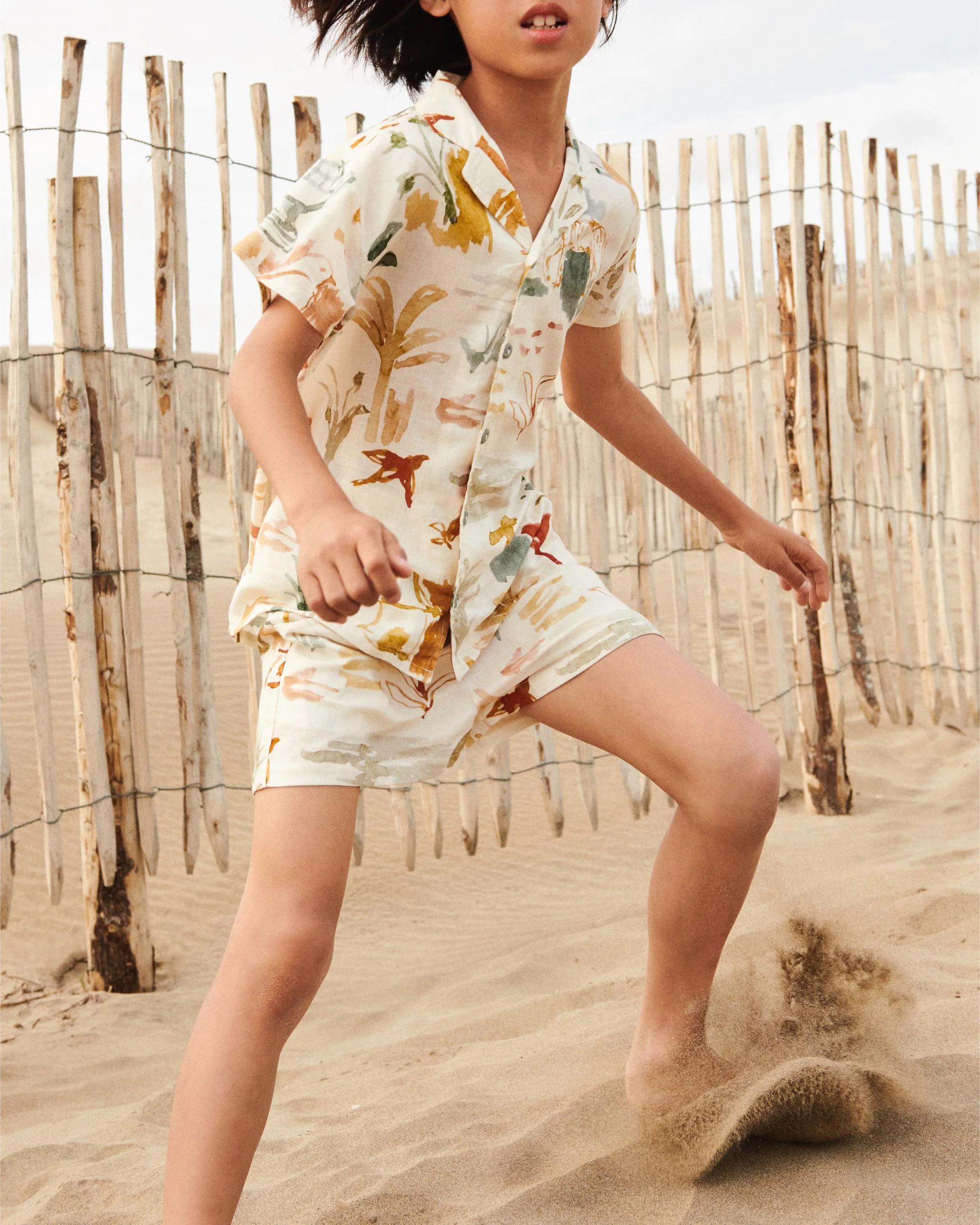 Marcel in wonderful watercolour print crafted from softest linen rayon blend. Comfortable fit, featuring classical collar and buttons at front. This shirt matches perfectly with Marcel shorts.